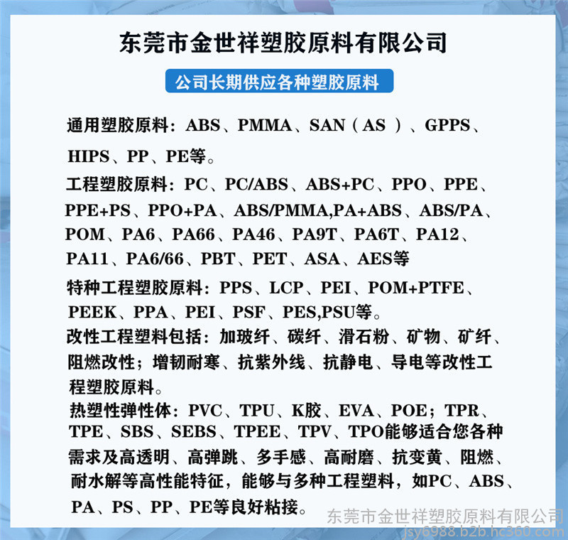 参数: 比重:1.42无 吸水率:0.2% 收缩率:1.8到2.2% 收缩率:1.8到2.2% 熔指:34g/10 min