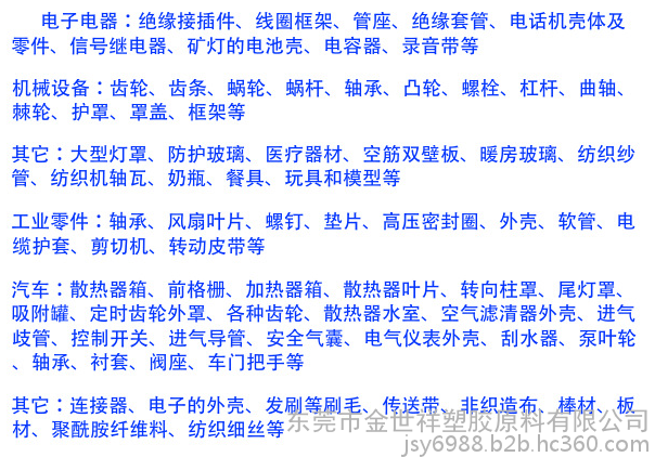 | 用途级别 | 电动工具配件,电子电器部件,家电部件,型材,运动器材 |