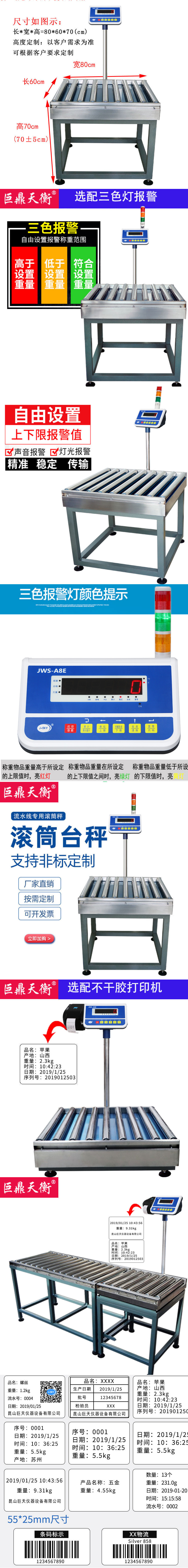 | 产品用途 | 滚筒台面40 * 50cm,滚筒台面50 * 70cm,滚筒台面50 * 80cm,滚筒台面60 * 60cm,滚筒台面60 * 70cm,滚筒台面60 * 80cm,滚筒台面80 * 80cm,另选配三色灯,选配打印机,选配蓝牙仪表,配滚筒支架,配智能显示器,配智能显示器+报警灯,配智能显示器+标签打印机,配智能显示器+票据打印机,RS232通讯接口,RS485通讯接口,打印纸42 * 54mm,蓄电池,仪表支架,原装电源线,防爆显示器,显示器按键贴 |