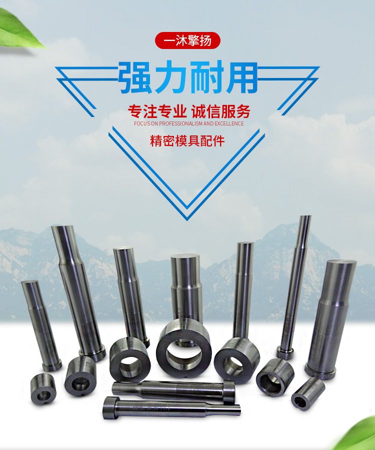 SKH51冲针、SKD11冲头、DC53冲针、三节冲头、抽芽冲头、沙拉冲头、子母冲头、子母异形冲针、引导冲针、导正销、翻孔冲针、成型冲头、椭圆冲头、四方冲头、六角冲针、异形冲针、非标冲针等精密冲压模具配件订制。