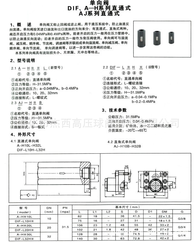 | 型号 | DIF、A--H型直通单向阀 |
