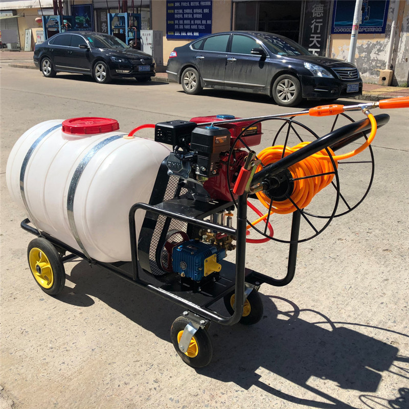 高压动力打药车特点:启动方便,结构紧凑,运输便利,射程远,雾化效果好,作业范围大,特有回液搅拌器,喷施效果佳,维护简便,使用寿命长。