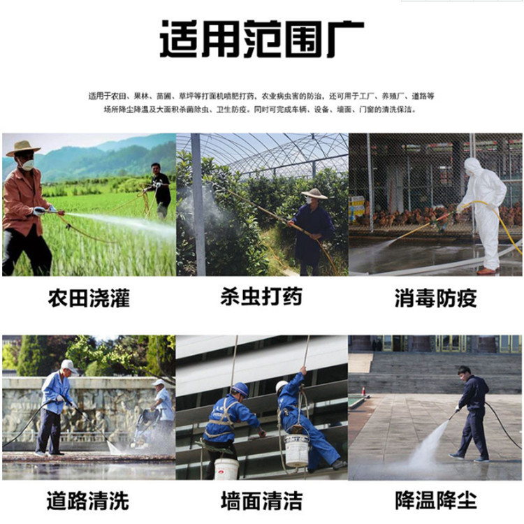 大田、果园、花圃苗木、蔬菜大棚、茶园、草坪等喷药防除治病虫害以及抽水和喷灌等;