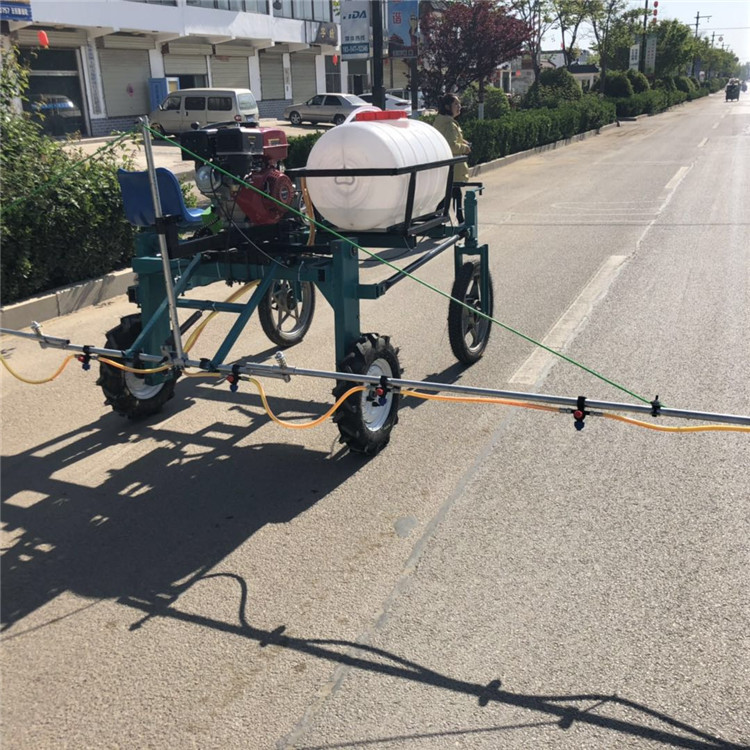 手推式四轮喷雾打药机,牧草打药机 园林喷雾器 手推式动力喷雾器,又称为四冲程喷雾机,属于高压喷雾器系列。以汽油机为动力,高压柱塞泵为工作源,应用专用喷雾高度可以达到垂直喷雾25米。如果需要更高喷雾,可延长高压胶管绑在长杆上工作。