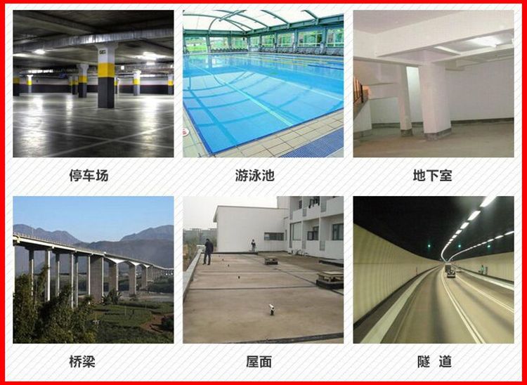 适用于工业与民用建筑的屋面、地下等的防水防潮以及桥梁、停车场、游泳池、隧道等建筑物的防水。