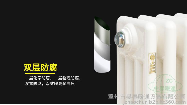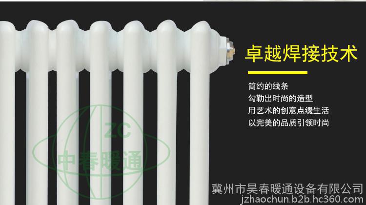 散热器按行业标准结合顾客要求组织生产。产品按管径分为¢25、50*25、60*30椭圆管三种,按单片中的柱数分为2柱、3柱、4柱、5柱、6柱五种,进出水口中心距,颜色和长度有多种供顾客选择,产品按多片联接成组出厂。散热器外表采用先进的静电喷塑和烘干等工艺,色彩亮丽,经久耐用,清洁方便。