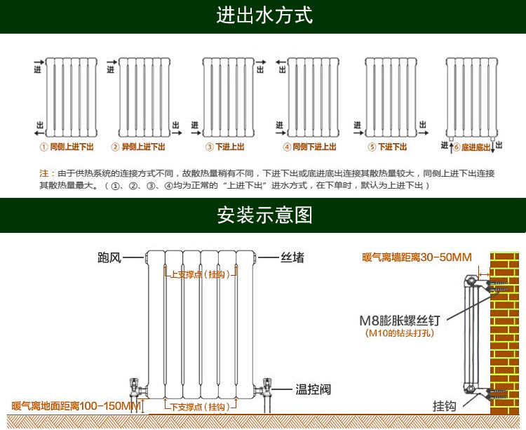 (2)更低能耗,更多省钱采用辐射散热与强制对流散热相结合的原理,设计合理,散热表面积大,大大提高了散热器的热工效率,降低了能耗,同等室温,同等散热效果下,铸铁、钢制片头,双搭散热器的热水用量是该产品的2-3倍,该产品节约能耗50%以上,让用户采暖更省钱。