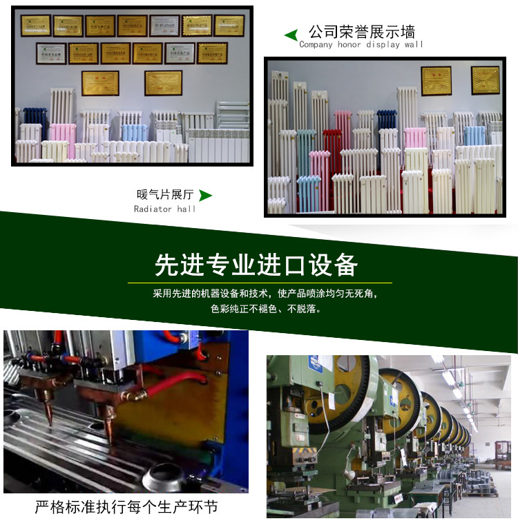 (4)更长寿命、更高耐压制对流散热器全部选用**钢材,经30多道工艺精制而成,内腔,外表采用特殊工艺全面防腐处理。耐压高(25公斤以上),抗腐蚀,寿命长。