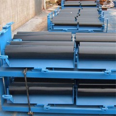 4、托辊支架安装在输送带的两侧,防止输送带发生跑偏。有效使得胶带运行平稳可靠。