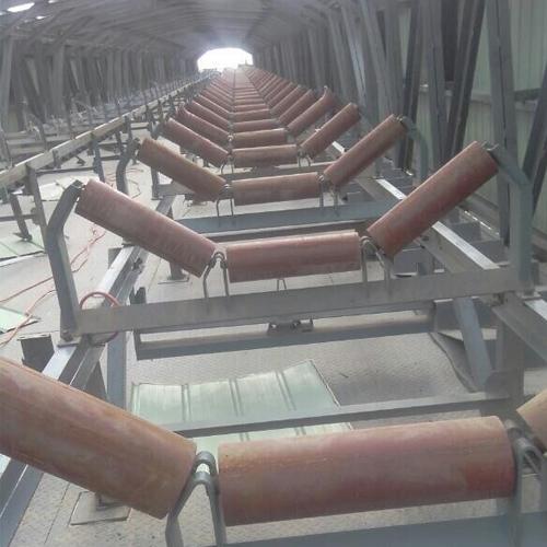 4、托辊支架安装在输送带的两侧,防止输送带发生跑偏。有效使得胶带运行平稳可靠。