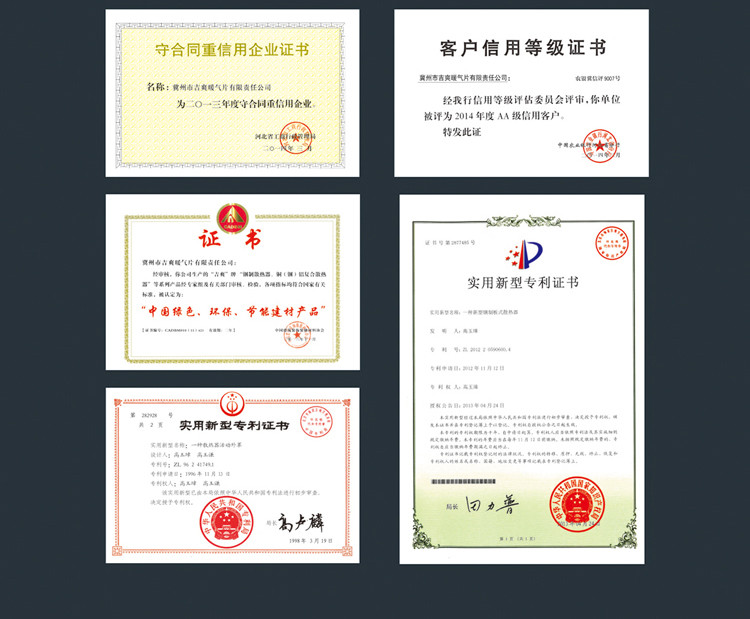 3、严禁以高温或明火烘烤散热器表面,会导致漆面变色或脱落! 二、使用 常见问题及处理 1、室内空气干燥散热器熏墙;处理办法保持散热器清洁及周围环境卫生。加装加湿器增大空间湿度避免悬尘.2、散热器不热;处理办法**时间检查热源是否正常,如正常则是因管内某部位有空气未排除。这时打开排气阀将