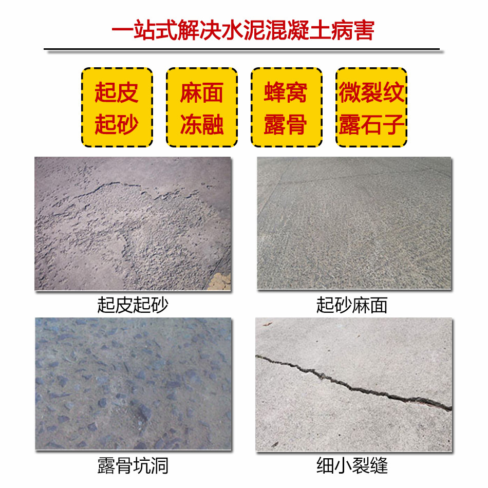 较快的早期性能体现和较高的早期强度,且后期不衰减,对很多病害部位可做到一次性根除;材料本身有很强的防水、耐腐蚀和抗紫外线能力,其抗老化能力是原水泥混凝土的5倍以上,性能衰减不会早于原混凝土,不会因老化而失去粘接能力和抗压强度。