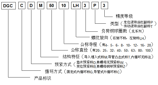 DGC系列滚珠丝杠副有标准螺母联接尺寸,请尽可能依次标准配合设计,不但交货期短,价格也较低,另外也可依照贵公司的特别设计要求而制造,订购时请提供下述资料: