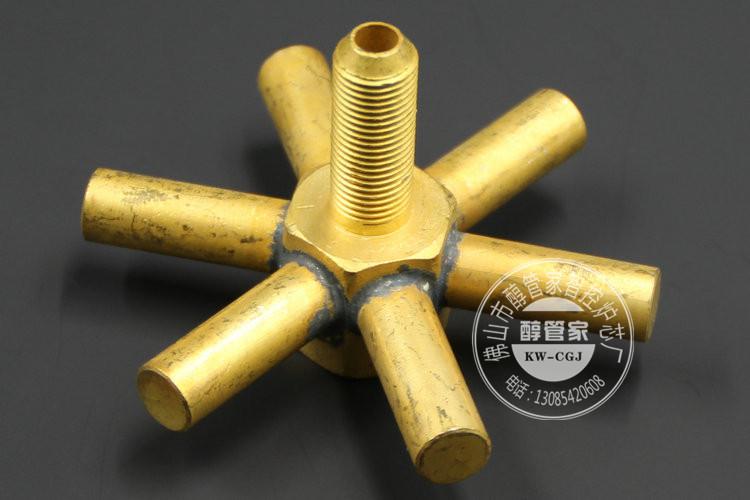 炉头构造:铸铝加热圈、炉头底板、六角喷嘴、点火针、传感线、油路铜卡套一对、喷嘴固定件、铜软管(外径4CM/内径3CM/壁厚0.5CM/15CM)、铜软管(外径4CM/内径3CM/壁厚0.5CM/80公分)。