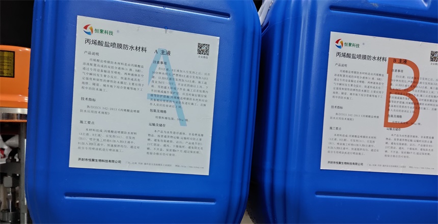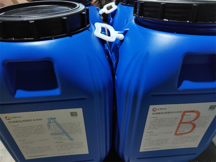丙烯酸盐喷膜防水材料HJ900是由丙烯酸盐溶液配置而成的双组分液体(A液、B液),通过专用设备输送至喷枪,两种液体在空气中瞬间发生聚合反应、快速形成具有一定强度和韧性的弹性防水膜层;主要应用于地铁、隧道、城市地下综合管廊等地下工程中的防水施工。