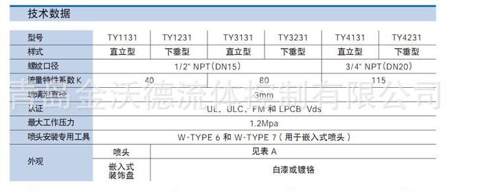 具体泰科消防水喷淋灭火产品规格型号与选型报价请发电子邮件与我们联系。