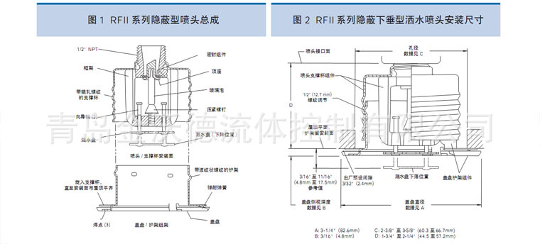 ??RFII 系列扩展覆盖轻危险级 (ECLH) 隐蔽下垂型喷头 K=80,玻璃泡直径3mm,配有隐蔽型喷头的平盖盘,使喷头具有装饰性。该喷头是建筑敏感性区域的选择,如旅馆的门廊、办公楼、教堂和饭店等。