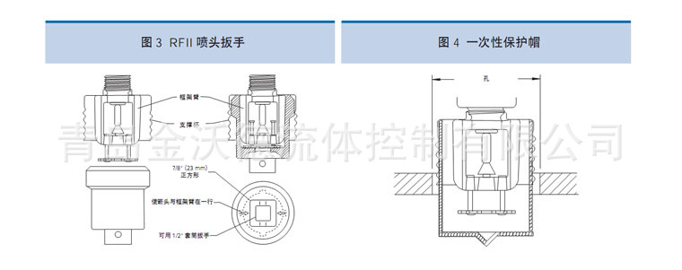 ??RFII 系列喷头 (TY3532) 的快速响应热敏性可以对扩大覆盖面 ( **大达5.5mm×5.5mm) 提供快速响应的扩大覆盖 (QREC) 喷洒。?? 产品由喷头,可分离盘,一次性塑料保护帽三部分组成。