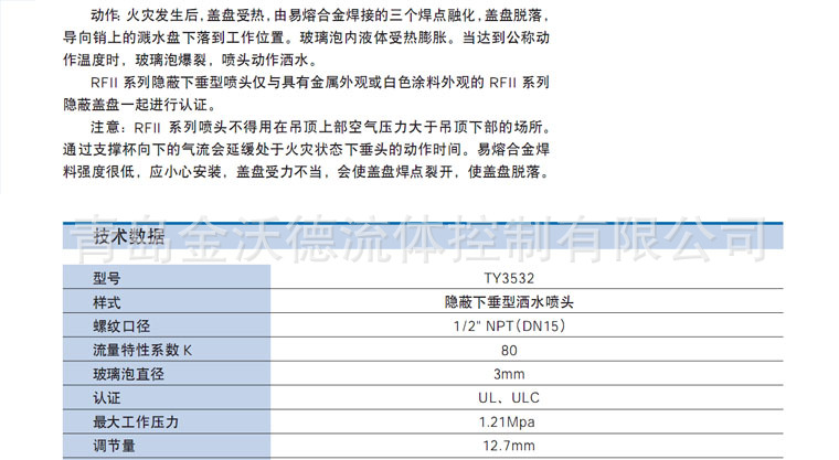 具体泰科消防水喷淋灭火产品规格型号与选型报价请发电子邮件与我们联系。