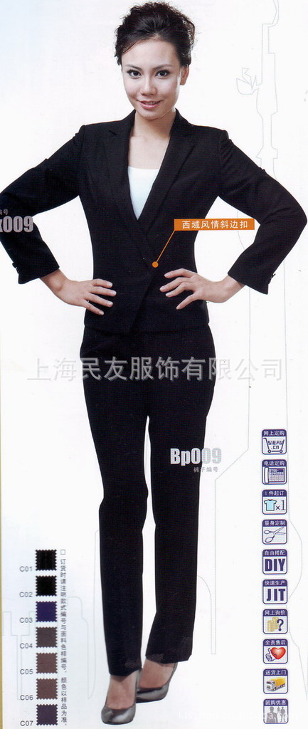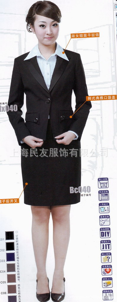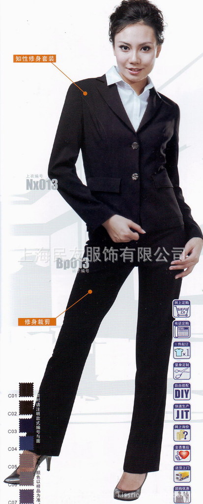 职业制服,统一着装是各企业单位强大凝聚力的表现,我公司按各单位要求(无论绣标、印标)都将根据各公司提供的1:1图案、颜色加工所需的胸标、袖标。