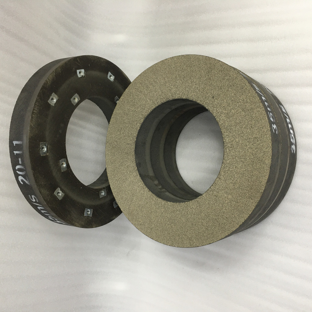 (3)能制成各种复杂形状和特殊要求的磨具由于树脂结合剂磨具硬化温度低,可常温硬化,收缩率较小,可制成各种复杂形状和特殊要求的磨具。如采用玻璃纤维增强的树脂砂轮,易排屑、散热性好的多孔树脂砂轮和带沟槽砂轮;改善磨削工艺条件的螺栓紧固砂轮、电解磨削砂轮、抛光砂轮,以及筒形砂轮、碗型、碟形等异形砂轮。