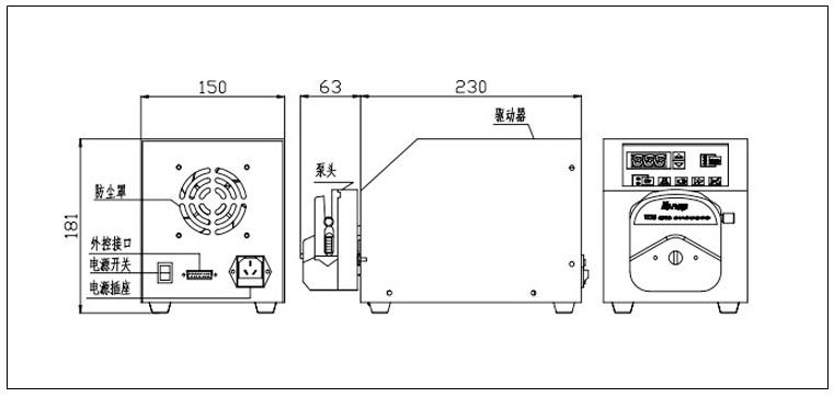 流量范围:0--1600ml/min 转速范围:1—300rpm 正反转可逆 转速分辨率:1rpm 调节方式:薄膜按键连续调节,支持外部信号控制和通讯控制 显示方式:3位LED显示转速,LED指示灯显示工作状态 外控接口:启停控制,方向控制,速度控制(标配:0—5V,选配:0—10V,4—20mA,0—10KHz) 通讯方式:RS485通讯,支持Modbus通信协议 适用电源:AC220V±10%~50Hz/60Hz(标配);AC110V±10%~50Hz/60Hz(选配) 消耗功率:≤45W 工作环境:温度0—50℃;相对湿度<80% 防护等级:IP31 外形尺寸:240×150×181mm(长×宽×高) 重量:不锈钢机箱5Kg