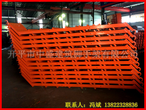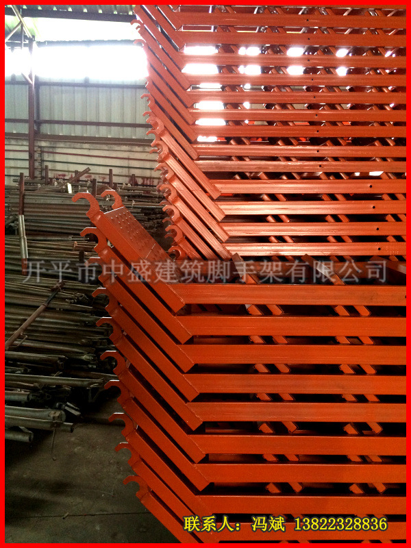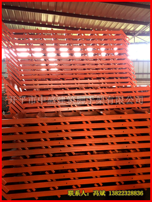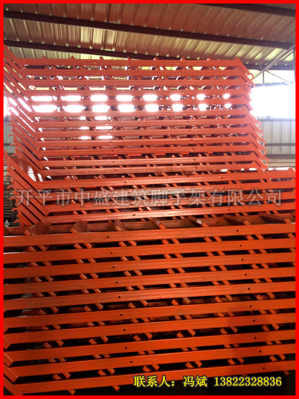 开平中盛建筑脚手架有限公司供应各种:新型脚手架(门式脚手架、梯式脚手架、钢支顶支撑架、雷亚架(舞台架)、菊花扣式脚手架、香蕉头式脚手架、碗扣式脚手架、轮扣式脚手架、等国内国外市场需要的脚手架及配件)和钢模板(国标钢模板、桥梁钢模板、异型钢模板及客户施工所需要的各自形状钢模板)。本公司采用先进设备进行加工。焊接工艺采用半自动系统焊接。产品质量保证可靠。表面处理可根据客户要求进行加工:油漆、喷粉、电镀、热镀锌。所有产品的配件齐全,规格型号齐备。欢迎来电订购或者来厂参观定货;