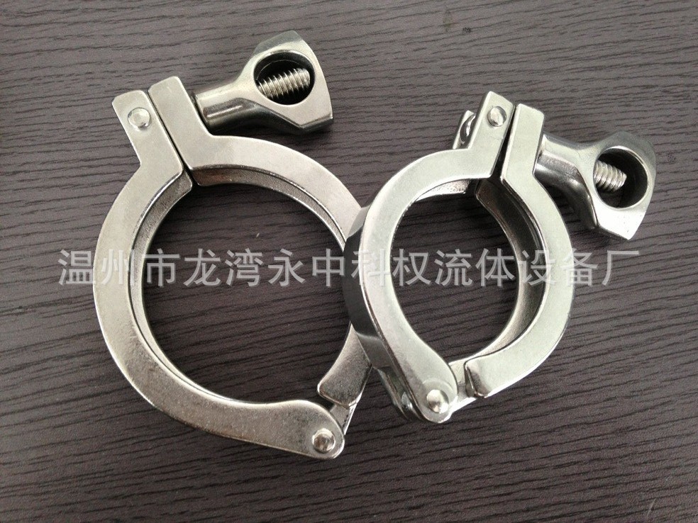 卫生级卡箍介绍 卡箍管束又叫做卡箍(俗称手扣),属于管接件,用于管与管之间的连接位, 用于连接的管件一般来要配备卡式接头才能使用,两端卡式接头中间 夹一个密封圈,然后套上管束锁紧固定主要用于车轴,船舶,柴油机,汽油机,机床,消防等各种机械设备,化工设备 的普通胶管,尼龙塑料软管等接口处的连接紧固及密封。材料主要为200系列 300系列不锈钢. 质量与用途:产品内外用**抛光设备处理,达到表面精密度要求;此产品适用于乳品、食品、啤酒、饮料、制药、化妆品等工业领域 |