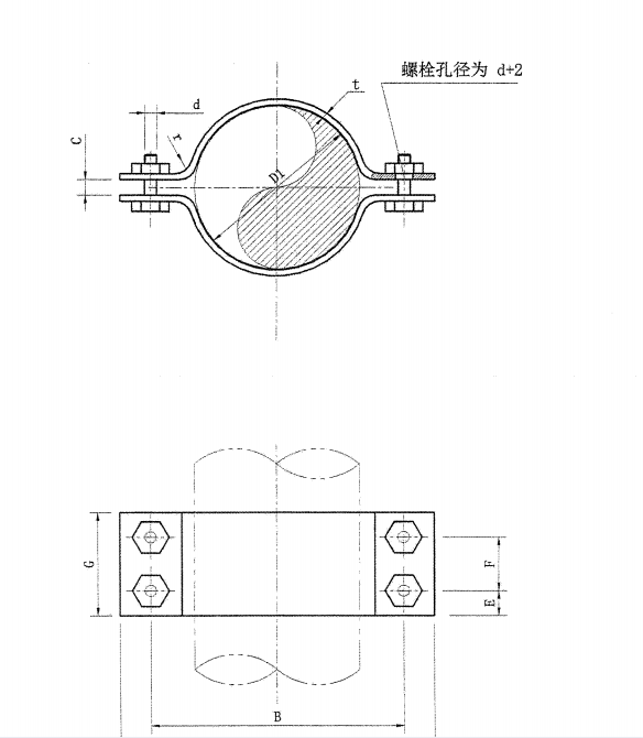 (3)用于振动管道上,应垫以厚3~4毫米的橡胶垫。