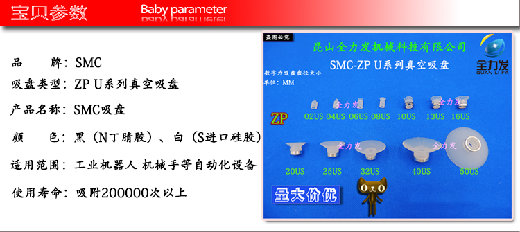 | 型号 | U系列真空吸盘 |