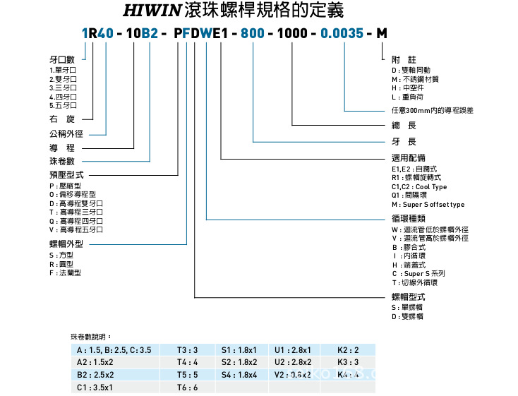 常备HIWIN研磨级滚珠丝杆型号如下: