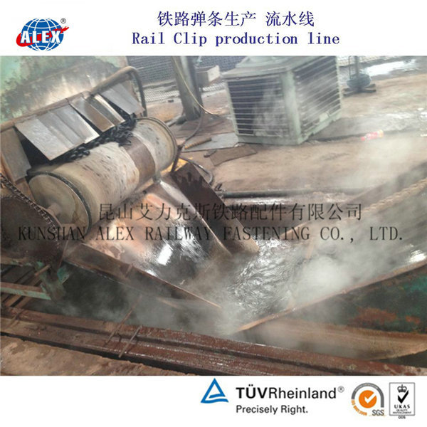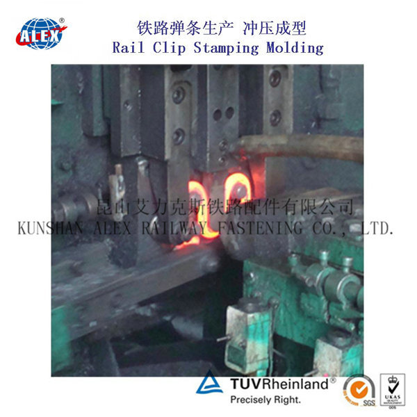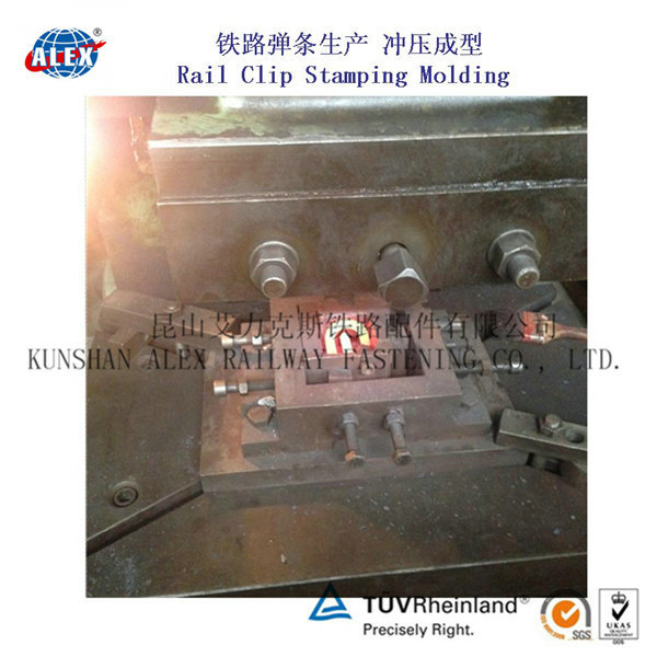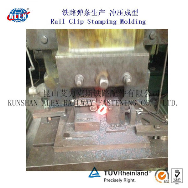 铁路钢轨是支撑机车和机车方向的部件,钢轨是通过弹性扣件固定在道床的轨枕上。弹性扣件的扣压件主要是弹条,它通过弹条的弯曲和扭曲变形,产生扣压力作用在轨道上,长期有效地保证钢轨之间的可靠连接,尽可能保持轨道的整体性,阻止钢轨相对于轨枕的纵横向移动,确保轨距正常,从而保证轨道车辆行驶安全。另外由于火车车轮与钢轨的接触属刚性接触,因此不可避免产生震动,而弹条特殊的弹性结构使其还具有吸收车辆驶过时产生的冲击能量,达到减震的作用。弹条是在反复交变的应力下工作,它承受弯曲、扭转、疲劳和腐蚀等多种作用,在车辆通过时,还要承受极高的瞬时冲击载荷,所以对弹条的性能要求十分严格。