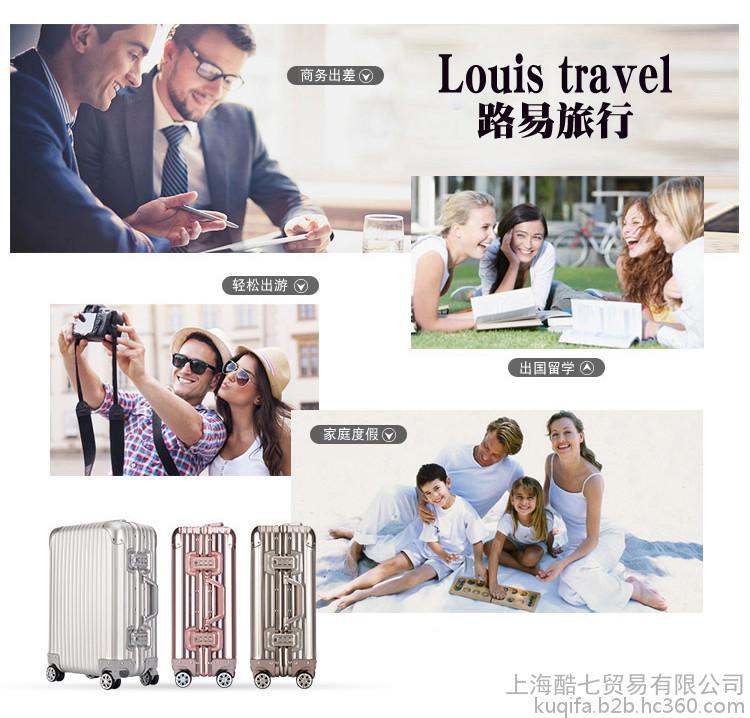 上海酷七贸易有限公司于2013年成立,是一家以箱包,生产,销售为一体的电子商务公司,公司下设设计部,运营部,售后服务部,客服部,仓储物流部等多个部门,主营旅行箱,拉杆箱;公司旗下主打旅行箱品牌Louistravel 路易旅行,品牌诞生于2013年,定位成人出差,旅游,行李箱,风格以韩风为主打,线下以来样定做,批发形式与多家企业和批发商建立了长期合作的关系,经过短短几年的发展在国内已经初具规模,Louistravel 热衷于设计研发旅行箱包,采用先进制作工艺,研发个性款式,打造专业硬箱行李箱品牌,公司坚持以技术打造自己的产品,以坚固耐用,**的使用体验,收到顾客和销售商的一致好评,公司的宗旨是让每个旅行箱成为旅途中**亲密的伴侣,一起分享**之旅,一路走来,我们更加坚定于专营面向青年人的先锋旅行,专注提供多样化、个性化的境内外个人和团体定制旅行。并以“自由奔放的青春态度,积极向上的生存方式,勇敢探索的理性精神,先锋时尚的生活追求”为品牌核心.