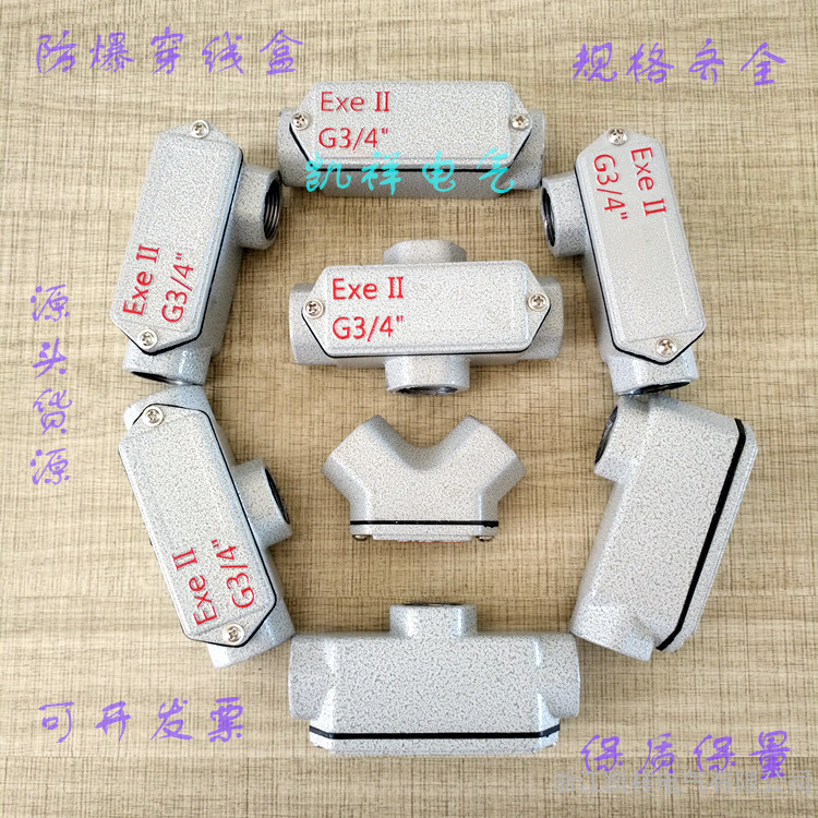 产品特点 ◆ 铝合金产品外壳表面高压静电喷塑、铸钢产品表面镀锌处理; ◆ 结合型式多样,满足现场各种布线需要; ◆ 不锈钢外露紧固件。 技术参数 执行标准:GB 3836.1、GB 3836.3、IEC60079 额定标志:ExeⅡ 防护等级:IP55 防腐等级:WF1 产品优点 1、本产品为增安型结构; 2、外壳为铸铝合金,采用先进的高温一次压铸成型工艺,表面光滑,外观精致美观。金属结构致密度高,内部无气泡、无砂眼,抗冲击性能好(可达7J),外壳防爆性能好,防爆标志直接压制其上; 3、产品外壳先进行高速抛丸清理,再采用高压静电喷塑工艺,塑粉附着力强,具有良好的防腐、抗氧化、抗静电、抗日照等性能; 4、产品体与盖的结合面采用橡皮密封,密封性好,防水性能极强; 5、结构形式多样,客户可按需选用; 该产品材质为铸钢材质,客户可按要求进行选用
