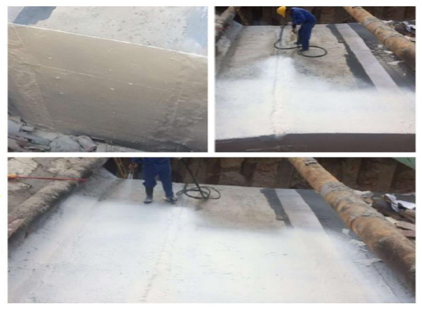 b. 喷膜防水材料可承受0.6MP的水压,保持长期不透水。
