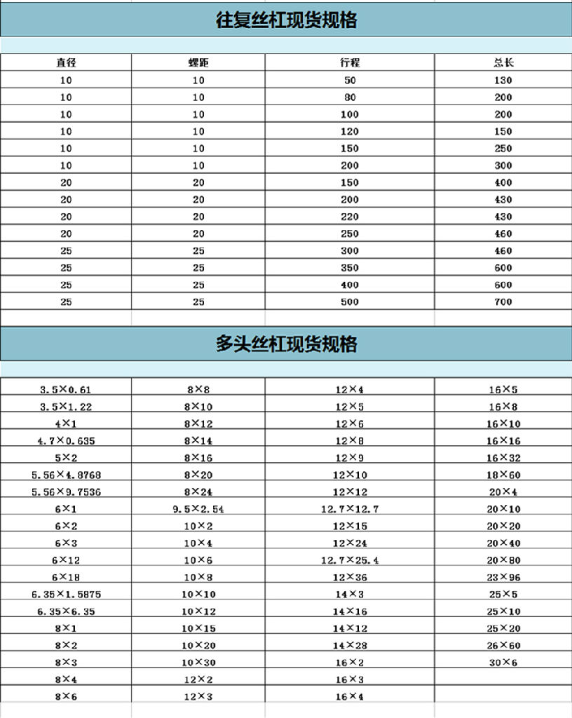 往复丝杠10*10--50--130 10*10--80--200 10*10--100--200 10*10--120--250 10*10--150--250 10*10--200--300 2020--200--430 2020--220--430 2020--250--460 2525--300--460 2525--400--600 2525--500--700
