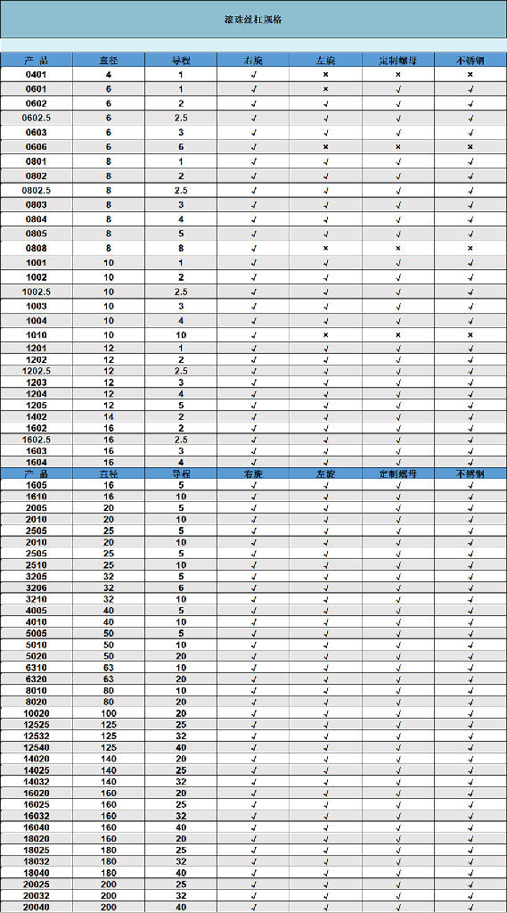 冷轧滚珠丝杠1204 1604 1605 1610 1616 2004 2005 2010 2020 2510 2505 2525 3205 3210 3232 4010 4005 4010 4040 2040 3220 5005 5010 5050 6310 8010