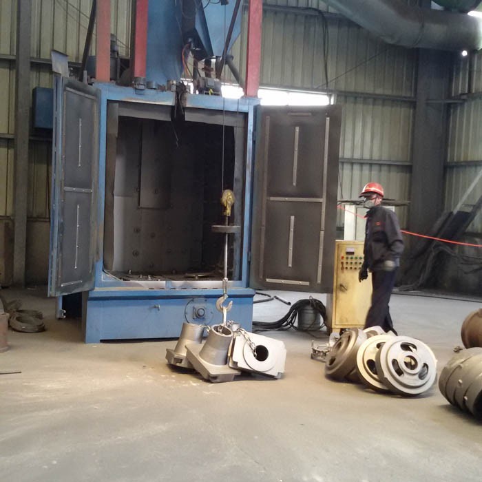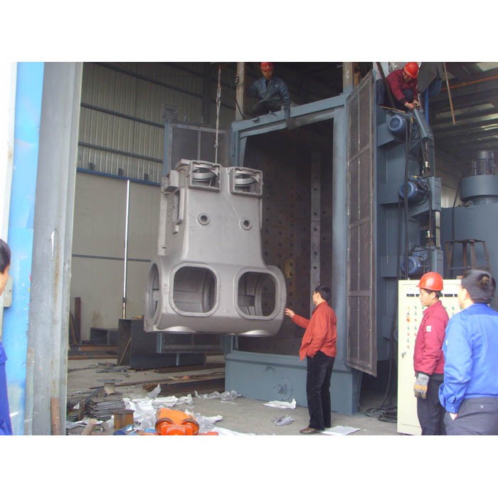 该系列抛丸机适合铸件的清砂和开关复杂的焊接件的表面处理,抛射时工件被吊在空中并回转,与转台式不同,工件的底面也能得到抛丸处理,抛丸室内采用了高耐磨性的硬保护,弹丸直射部位全部用高耐磨性合金铸铁衬板,有效地防止了弹丸对室体的磨损,备有客户自选的各种附件,室门自动开闭,并设计了各种吊运路径的平面图供客户选择。