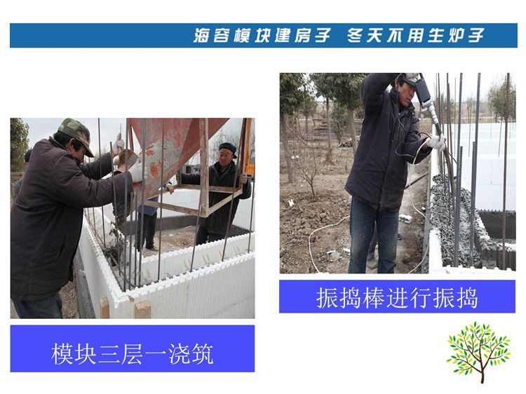 海容模块代替了传统的木质模板,省却了大量的人工成本,兼顾了内外保温,保温与建筑同寿命,使用寿命100年以上