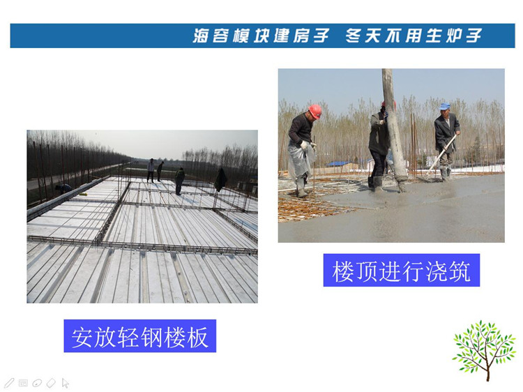 7.综合成本低:同等条件的节能要求下,用模块建房可大幅降低材料费用;施工方便,机械化作业程度高,节省用工成本;保温效果好,大大降低冬季采暖和夏季降温的费用。