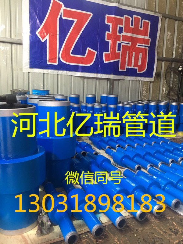 (刘经理 13031898183 联系QQ1051000696)整体式绝缘接头由下面各零件组成:上、下管、套筒、绝缘件、密封件、绝缘涂层。在绝缘接头的上、下管对接端面件,夹有绝缘件和密封件,形成具有绝缘性能的双密封结构。套筒采用坡口焊接或与上导管直接焊接两种形式,将绝缘件和上、下管牢固封裹在里 面,形成“密封容器”,从而既保证了良好的绝缘效果,又大大提高了绝缘结构的承压能力。