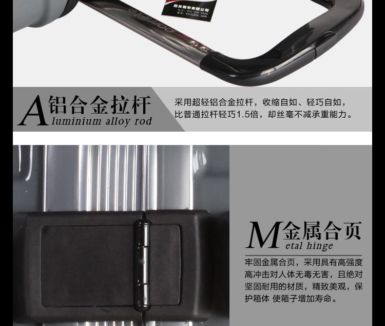 本公司专业生产pc+abs拉杆箱,所有配件经过专业测试才进行生产,成品出来后检验员**检查通过后才进行包装,所有商品款式新颖,质量保证。为了给广大客户不同的需求,我厂可定制和加工,价格优惠。欢迎新老客户来我厂参观。