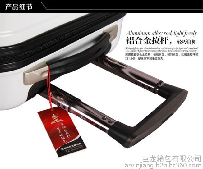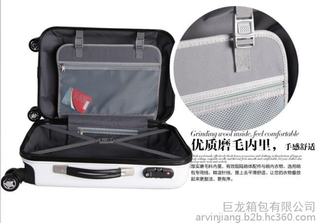 本公司专业生产pc+abs拉杆箱,所有配件经过专业测试才进行生产,成品出来后检验员**检查通过后才进行包装,所有商品款式新颖,质量保证。为了给广大客户不同的需求,我厂可定制和加工,价格优惠。欢迎新老客户来我厂参观。^_^