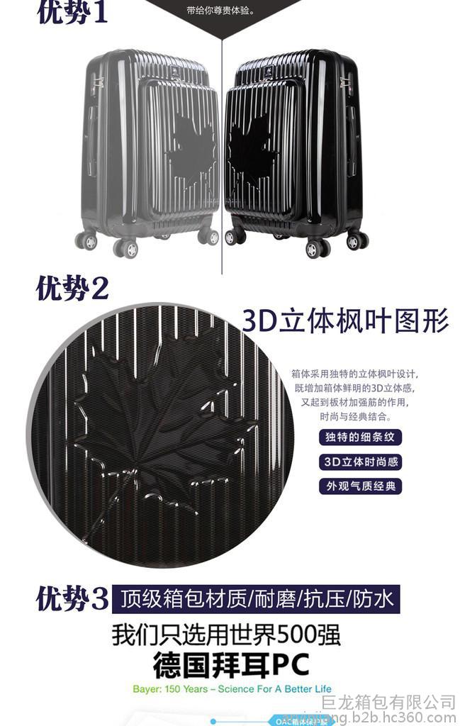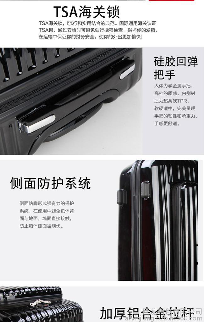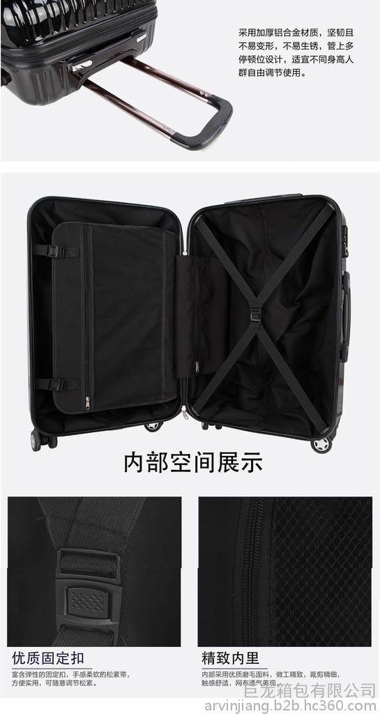 本公司专业生产pc+abs拉杆箱,所有配件经过专业测试才进行生产,成品出来后检验员**检查通过后才进行包装,所有商品款式新颖,质量保证。为了给广大客户不同的需求,我厂可定制和加工,价格优惠。欢迎新老客户来我厂参观。^_^