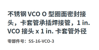 不锈钢 VCO O 型圈面密封接头,卡套管承插焊接管,1 in. VCO 接头 x 1 in. 卡套管外径