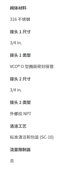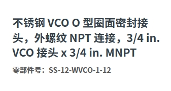不锈钢 VCO O 型圈面密封接头,外螺纹 NPT 连接,3/4 in. VCO 接头 x 3/4 in. MNPT