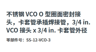 不锈钢 VCO O 型圈面密封接头,卡套管承插焊接管,3/4 in. VCO 接头 x 3/4 in. 卡套管外径