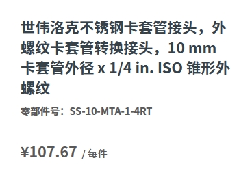警告: 请勿将Swagelok产品或不符合工业设计标准的元件(包括Swagelok卡套管接头端接)与其他制造商的产品或元件混用/互换。