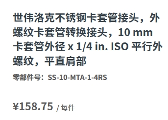 警告: 请勿将Swagelok产品或不符合工业设计标准的元件(包括Swagelok卡套管接头端接)与其他制造商的产品或元件混用/互换。