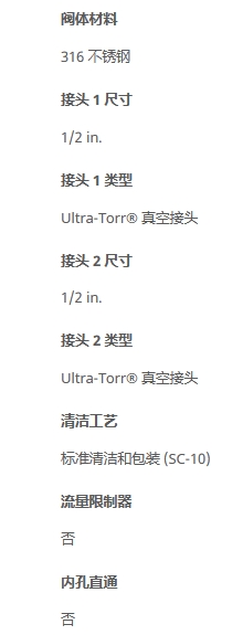 不锈钢 Ultra-Torr 真空接头,联合接头,1/2 in. 卡套管外径